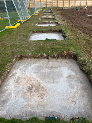 Excavated concrete foundations & levelling piers for temporary classrooms, inc. pads for AHU’s.